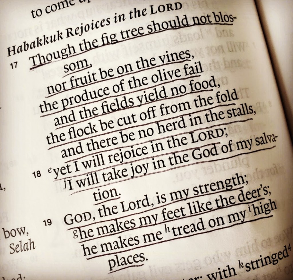 Habakkuk 3:17-19: I will take joy in the God of my salvation Share this: Click to share on X (Opens in new window) X Click to share on Facebook (Opens in new window) Facebook Like Loading...